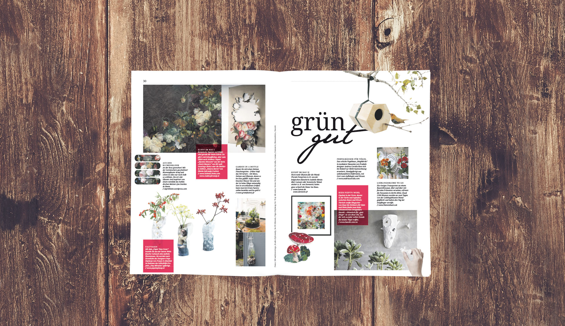 Lustvoll entwickeln wir auch die Cover des Magazins: Von der Idee bis zum Shooting legen wir uns ins (Grün)zeug.